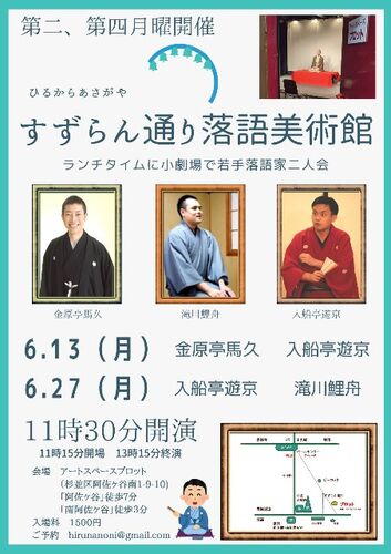 6月の出演情報です。 『連雀亭 ワンコイン』 【日時】6月4日(土)【場所】神田連雀亭【時間】開場/11:00 開演/11:30【木戸銭】500円【出演者】金原亭馬久、桂伸しん、三遊亭好好 6月04日 金原亭馬久桂伸しん(替)三遊亭好好 | フリカレ 『こまむ亭寄席(第10…