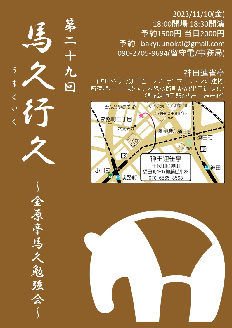 【出演者】金原亭馬久、春風亭一花、竹澤悦子(三味線/25日公演のみ)