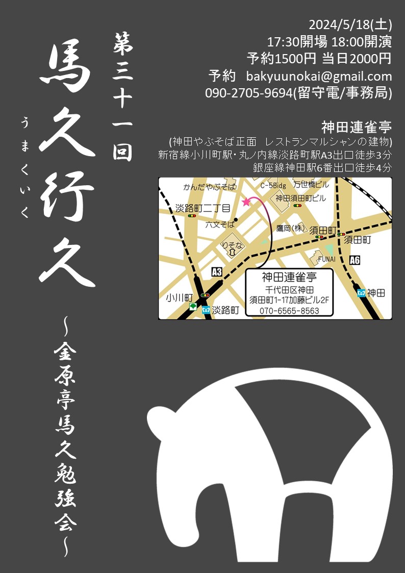 【出演者】金原亭馬生、金原亭馬治、金原亭小馬生、金原亭馬久、金原亭小駒、金原亭馬太郎、金原亭駒介 〈お囃子〉金山はる